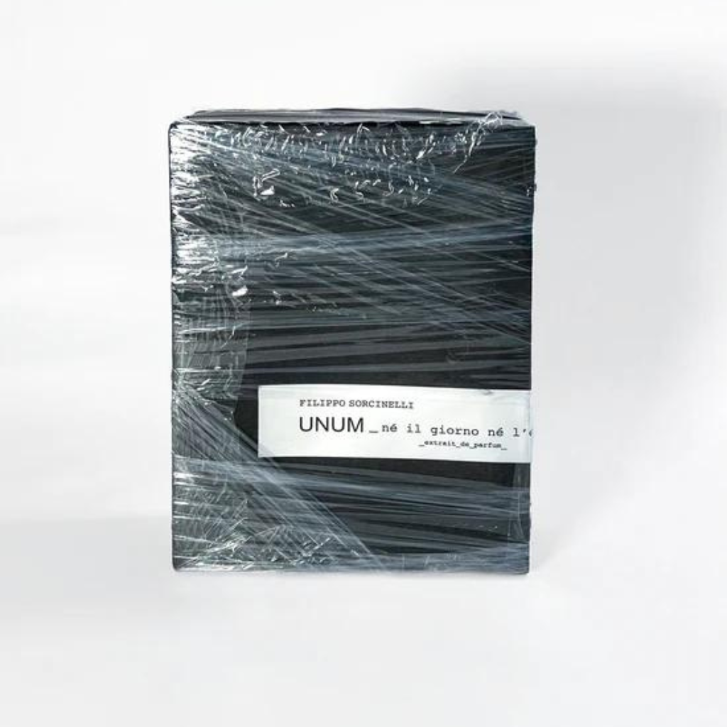 The packaging is in line with the UNUM collection; this time it is sealed with a cold transparent film and a silver label. The bottle (also silver) is placed in a "silent" black velvet bag, sealed in a heat-shrunk sheath which needs to be cut physically using the metal scissors contained in the box.